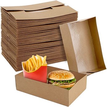 Paquete de 50 bandejas de comida de papel Kraft, 4 contenedores de comida emergentes de esquina, bandeja de caja de comida de cartón a prueba de grasa para fiesta,