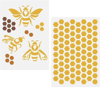Bee Honeycomb Hexagon Stencils、2 Pcs Bee Theme Drawing Template for Painting on Wood Fabric Wall Furniture Card Making Home 12月